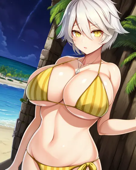 TW - Miyabi、短い白髪、黄色い目、縦に細長い瞳孔