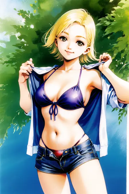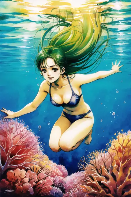 4.0版本LORA能更好的还原和模仿美树本晴彦的手绘水彩风格。