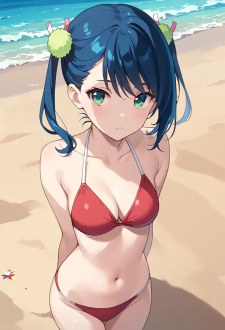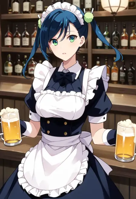 히바치, 파란색 머리카락, 트윈테일, 짧은 머리, 녹색 눈,