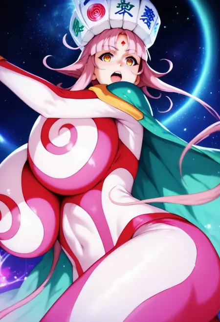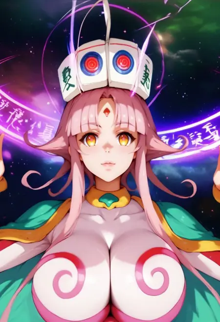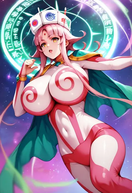 headdress, pink hair, short hair, long locks, forehead jewel,