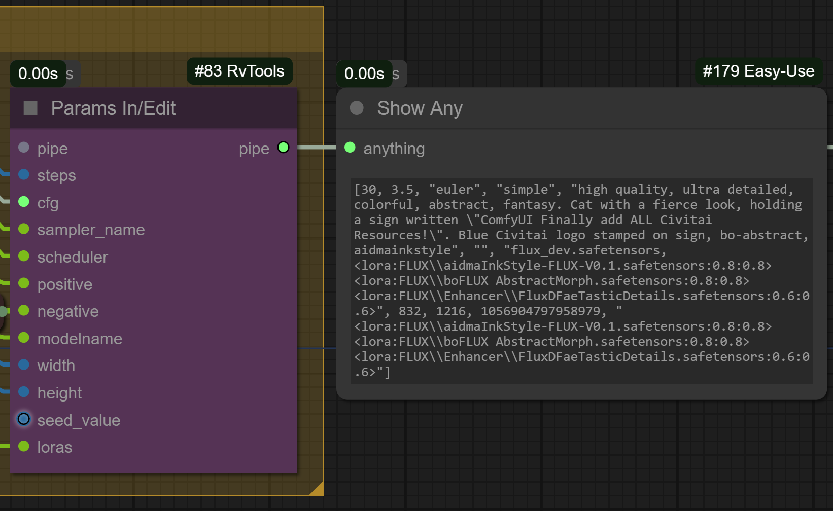 此工作流使用 RvTool 节点,收集你图像使用的所有信息,包括 LoRA。我同时还添加了我信赖的 LoRA 自动触发词 节点,可自动添加启用 LoRA 的触发词。
