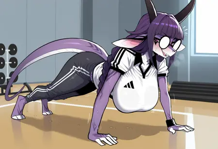 복장: 발가락이 드러난 팬티, 발톱, 귀걸이, 짧은 재킷, 가슴 장식