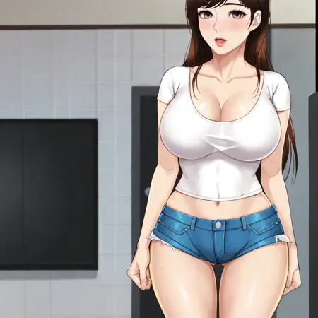 短裤装触发词:YeonSu, 大胸, 1girl, 短裤, 白衬衫, 棕发, 露腹, 肚脐, 深沟, 露脐装, 牛仔短裤, 大腿间隙, 长发, 棕色眼睛, 短袖, 锁骨, 扫眉, 大腿, 紧身衬衫, 牛仔镜头