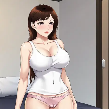 粉色内裤触发词:YeonSu, 1girl, 大胸, 内衣, 粉色内裤, 骆驼趾, 长发, 棕发, 深沟, 白色背心, 锁骨, 嘴唇, 大腿, 蝴蝶结内裤, 刘海, 棕色眼睛, 大腿间隙, 裸露肩膀, 遮盖肚脐, 曲线身材, 衬衫, 牛仔镜头