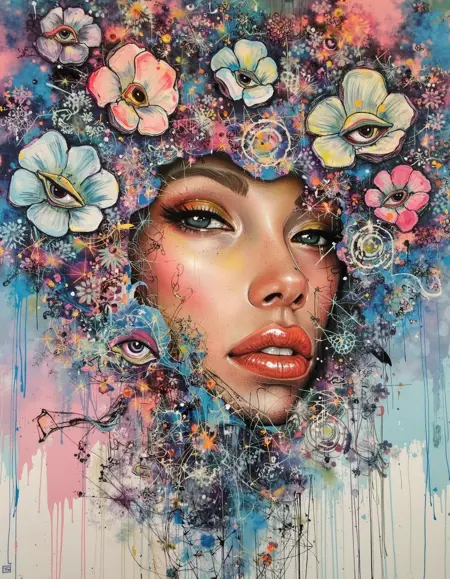 Raw Expressive Fusion: Bold Colors & Chaotic Linework는 강렬한 색상, 자연스러운 혼란스러운 선과 거친 거리 예술 요소로 특징지어지는 원초적이고 감정적인 스타일에서 영감을 받은 예술을 생성합니다. 이 모델은 데이비드 초가 만든 도시 및 그래피티 아트에서 발견되는 직관적 에너지와 억제되지 않은 감정을 포착하여 긴박감과 강렬함을 전달하는 역동적인 구성물을 만들어냅니다. 아름다움과 불편함이 혼합된 작품을 생성하기에 완벽하며, 인간 경험의 깊이를 두려움 없이 강렬하고 도전적인 시각으로 탐구합니다.