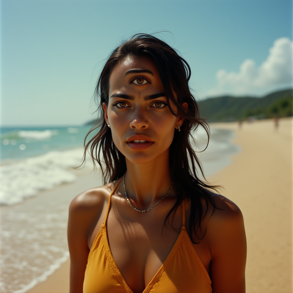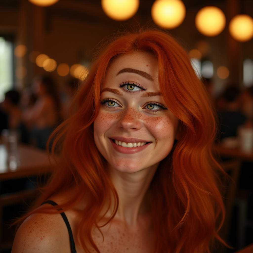 トリガーワードは使用しませんが、Fluxは記述的なプロンプトに良く反応するため、has three eyes および/または has a third eye を追加すると、より良い結果が得られる可能性があります。