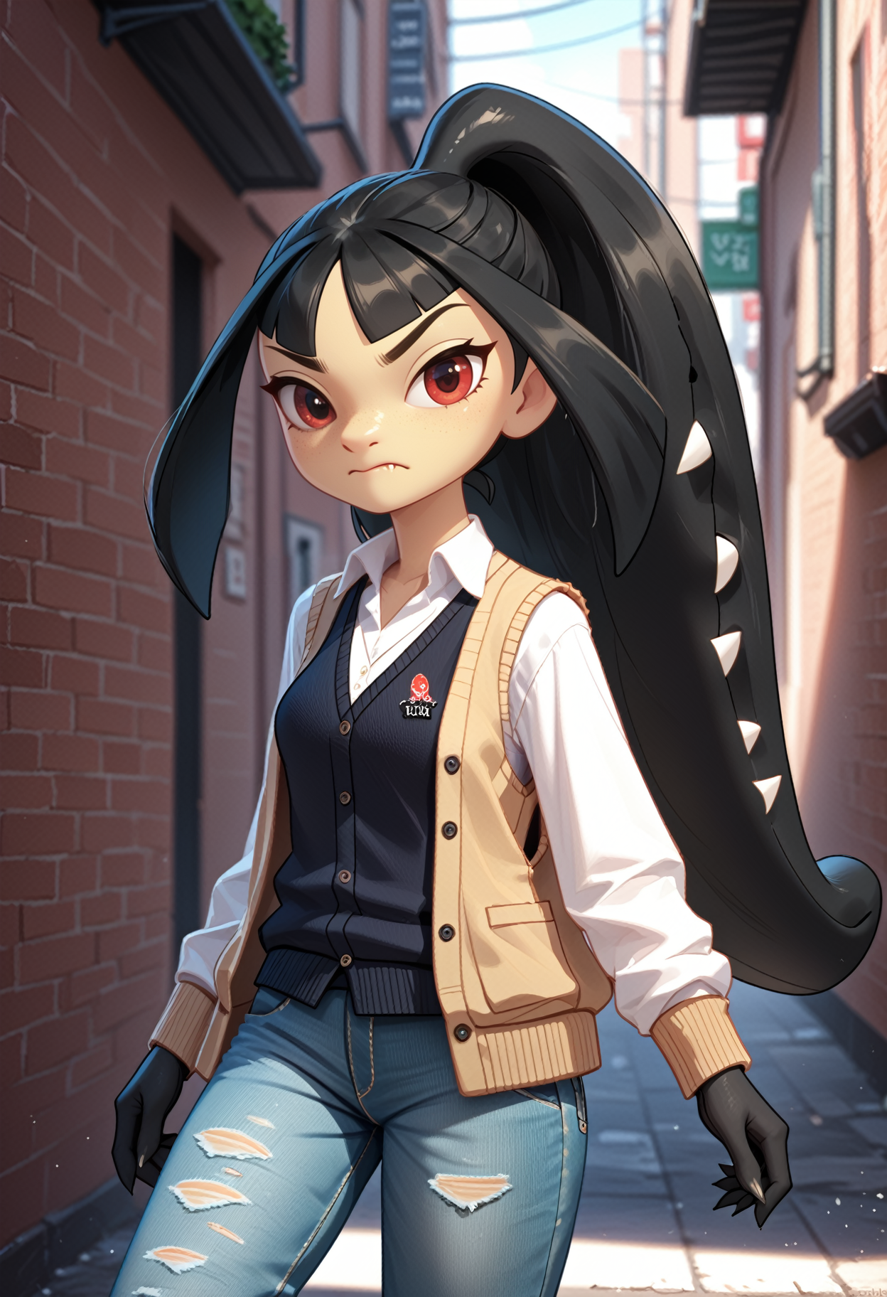 (Negative Prompts) fangs, (if you don't like her fangs showing.)