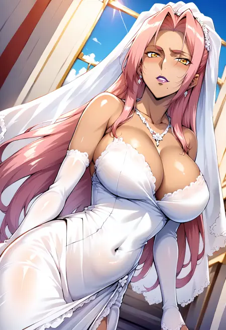 ig ed,wedding dress,elbow gloves,bridal veil,high heels,full body,white gloves,bare shoulders,side slit,bride