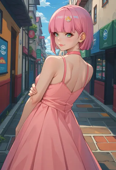 多色眼睛,绿色眼睛,蓝色眼睛,齐刘海,粉色头发,短发,不对称刘海,发饰,发夹,
