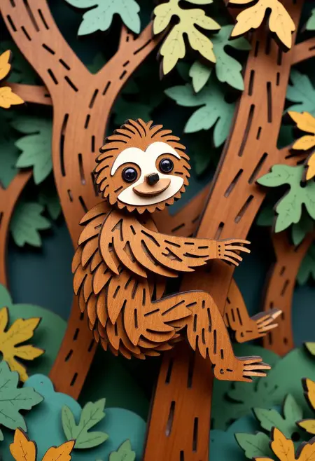 lora:ck-wood-piece-crafter-000018:1, a crafted wooden model featuring a textured [OBJECT/SUBJECT] in [SCENERY]. The wood used for the scene is colorful, and enhancing the depth and richness of the design. The background of the image is in a [COLORSTYLE] color palette and showing [ENVIRONMENT], contrasting and melting sharply with the lighter tones of the wood. The entire model is made from finely detailed, interlocking wooden pieces.