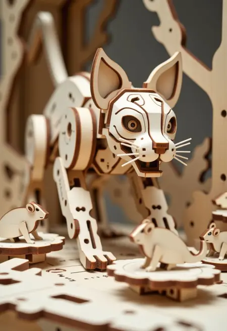 lora:ck-wood-piece-crafter-000018:1, a crafted wooden model featuring a [OBJECT/SUBJECT] in [SCENERY]. The model is made from finely detailed, interlocking wooden pieces.