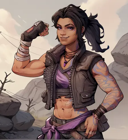 可能有伤疤,可添加紧致或肌肉发达,紫色嘴唇