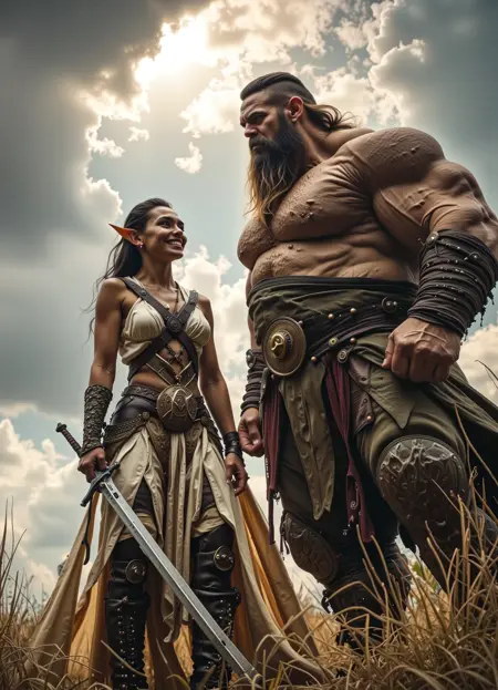 기본적인 프롬프트로 "바바리안 남자"나 "엘프 여성" 같은 문장을 입력하면, 매우 손으로 그린 듯한 스타일로 생성됩니다.