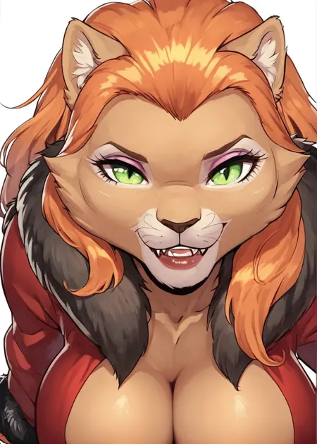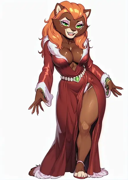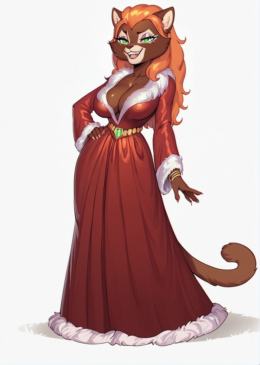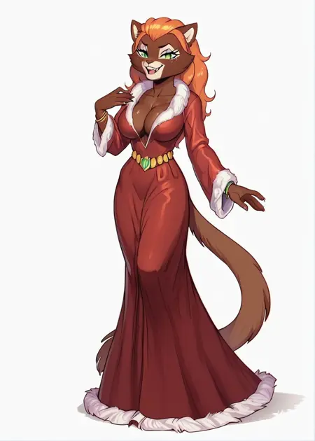 - 同人作品,橙色头发,红色连衣裙,猫娘,猫科,catrina_mlp