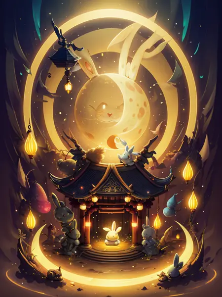 想要画面和展示图类似,建议采样步数30以上,尺寸横幅1024*768,提示词加些意象,比如月亮等。(用了0.2的治愈光效Lora)