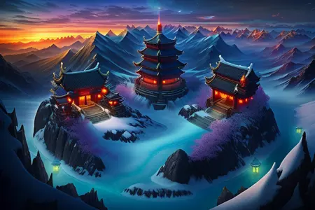 这个模型可用于生成中国仙侠风的地图,触发词是gufengmap,只要输入触发词即可出图。