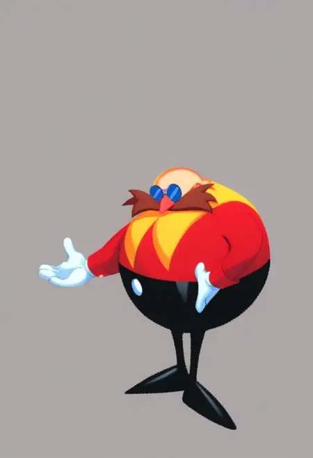 | Trained Words | ClassicDrEggman, 1boy, small bald head, distinct pinkish nose, bushy mahogany-colored mustache, spherical torso, thin but proportionate arms, thin but proportionate legs, red top, short yellow cape attached to shoulders by a triangular collar, black pants with attached boots and a pair of large silver buttons on the front, white gloves, blue pince-nez glasses, short,Copied! |