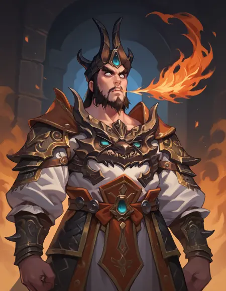ZhaoMingMortal, armor, black crown, blank eyes, facial hair,