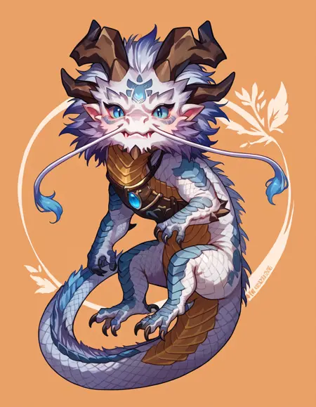 ZhaoMingDragon, dragon, no humans, horns, whiskers, scales, blue eyes,