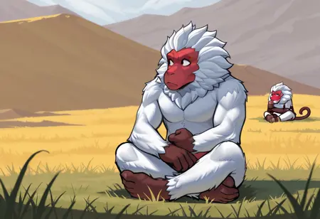 ホダン: ホダン、バボン、白い毛、赤い肌、サル、フューリー、タオル