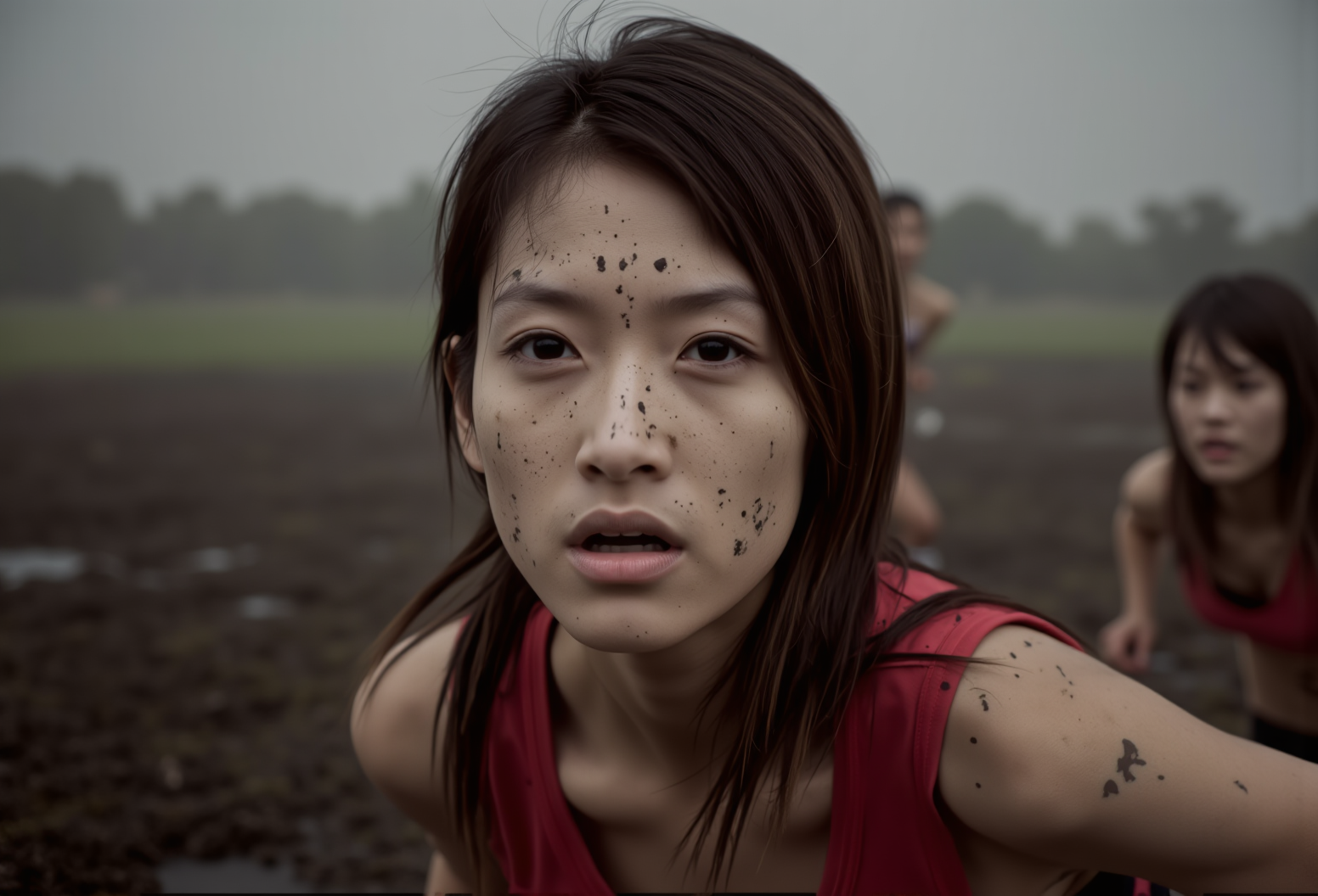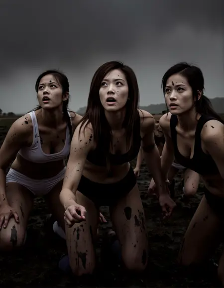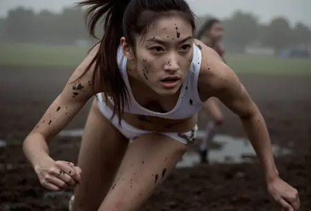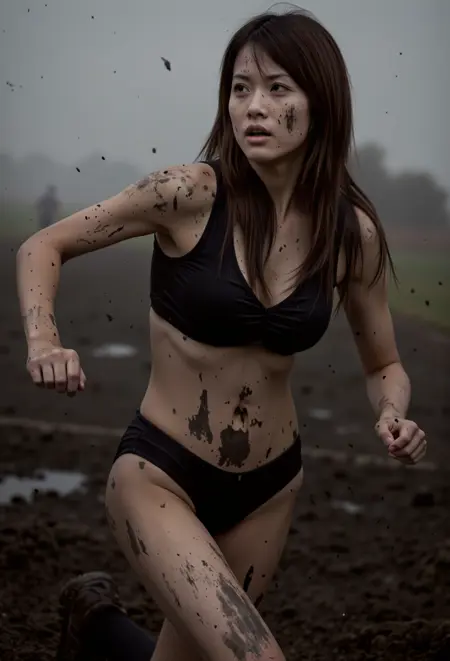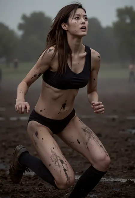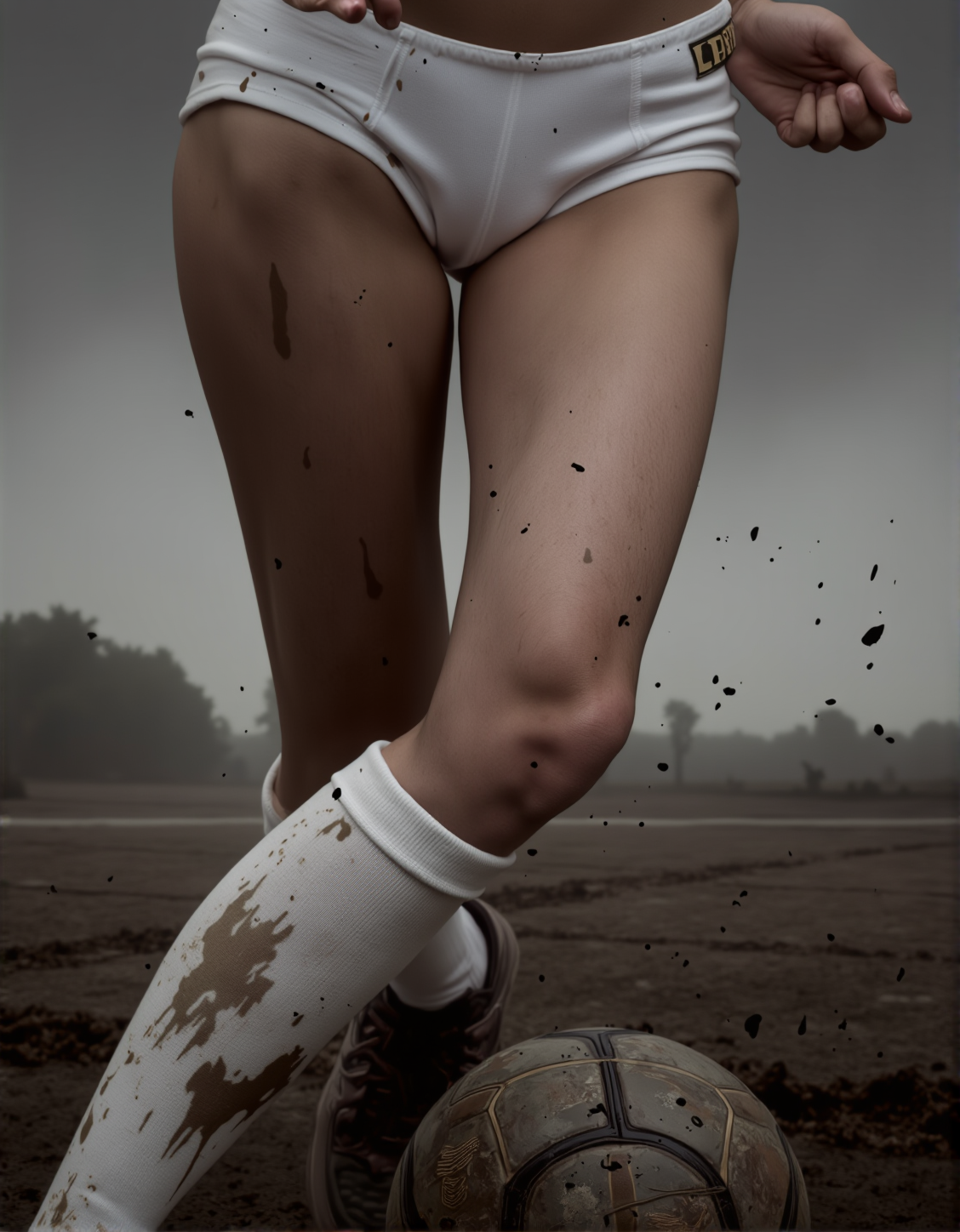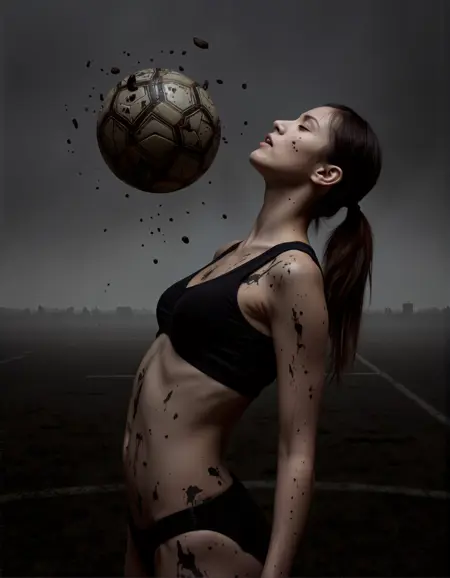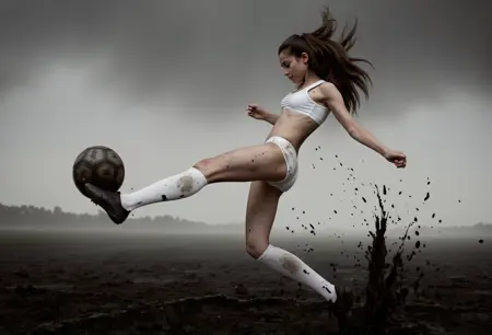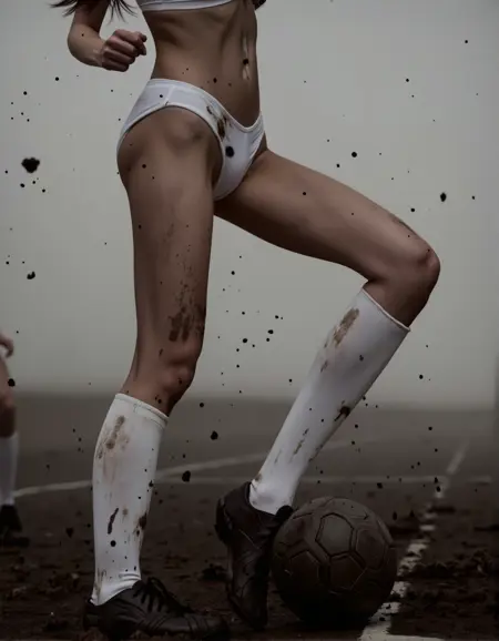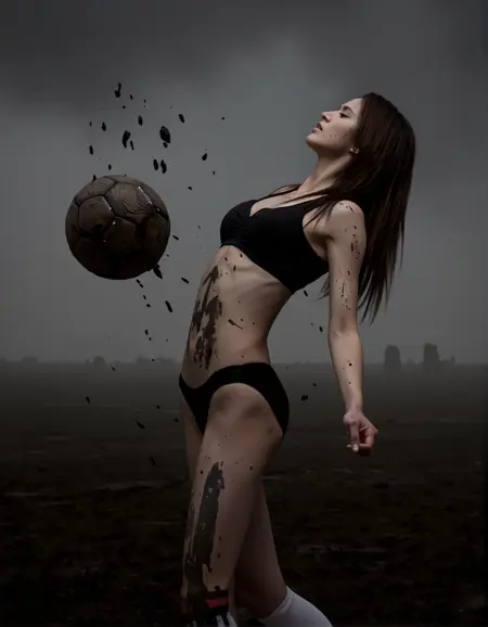 テーマは、霧の中の泥だらけのフィールドでビキニ姿でサッカーをするコーラン的(アジア的)な女性たちです。