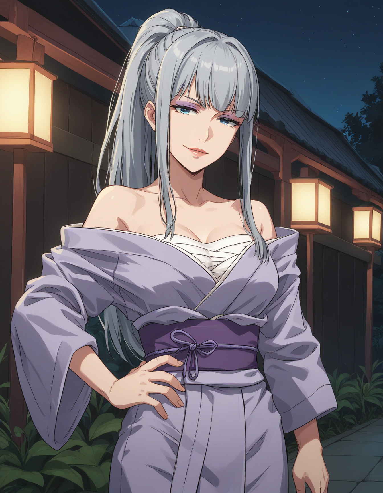 manamiAMW, grey hair, long hair, blue eyes, makeup, lips