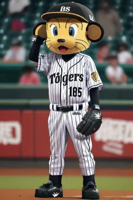 tolucky, 마스코트, 스포츠웨어, 야구 유니폼, 글러브, 헬멧, 야구 모자, 줄무늬, 옷에 쓰인 문구, 야구, 서 있는 자세, 벨트,