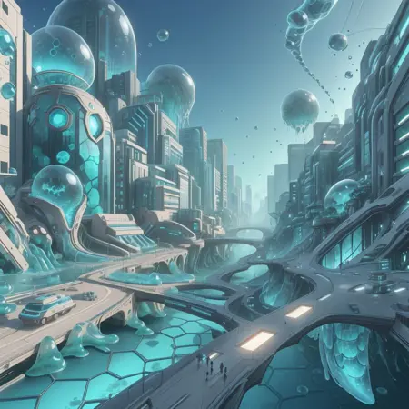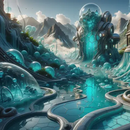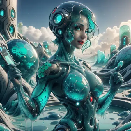 在这个平行现实中,人类得益于一项开创性的发明——半潜智能物质封装器(简称 S.L.I.M.E.),实现了曾经无法想象的零污染世界。S.L.I.M.E. 最初设计用于监测海水,后演变为新时代的基石,能够调整黏稠度、同化物质,并逐原子重塑环境。数十年来,S.L.I.M.E. 开始表现出对秩序的明显偏好,常以六边形图案塑造重构后的世界。尽管取得巨大成功,S.L.I.M.E. 却难以复制自然的混沌复杂性,导致修复后的景观呈现出不自然的统一性。随着社会面对这一新范式,争论仍在继续:S.L.I.M.E. 带来的六边形和谐,是完美世界的未来,还是对自然真正之美的冷漠背离?