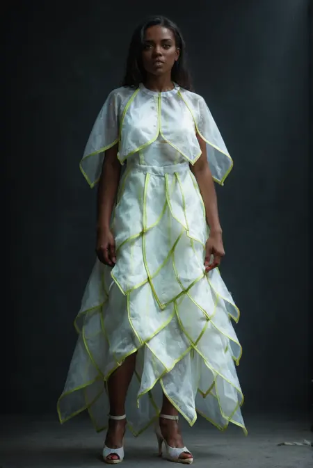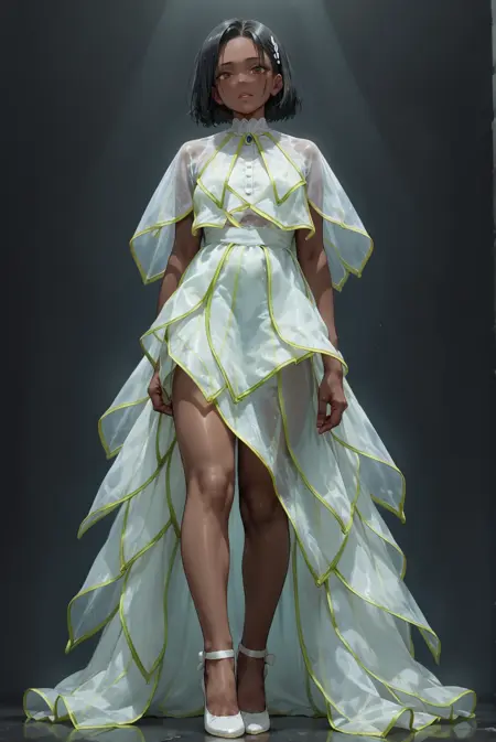 重要标签:白色披肩、白色裙子 = 如果你使用其他颜色,它们能让你的裙子呈现出带强调线条的白色外观