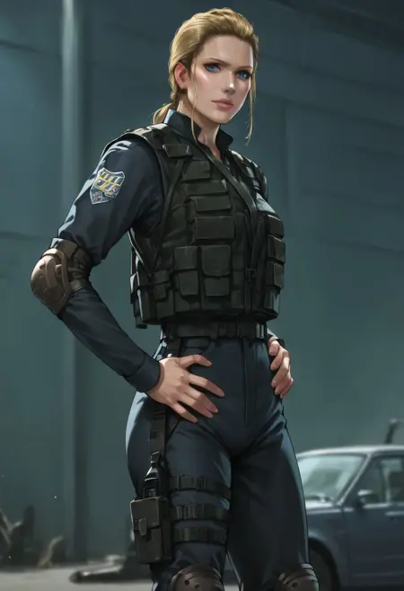 来自平庸的CG电影《生化危机:降灵》中的安吉拉·米勒。在所有战术装备之下,是一场烟雾秀。