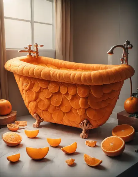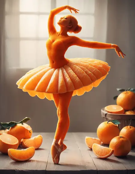 请务必包含触发词:(由蜜橘制成)。在提示中加入橙子和蜜橘会有帮助。