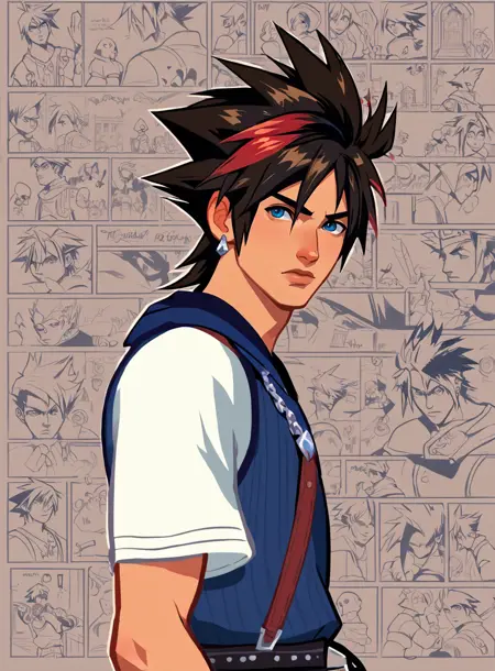 "score_9, score_8_up, score_7_up, bullypxl, comic wallpaper, lora:bullypxl:0.7, best quality, 2d, color background, (YOUR CHOICE) character"