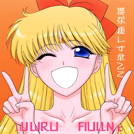 セーラーヴィーナス、ブロンドの髪、1人目の女の子、単体、リボン、長い髪、セーラー戦士のユニフォーム、スカート、ブロンドの髪、ジュエリー、胸、赤いリボン、手袋、魔法少女、青い目、背中のリボン、髪のリボン、肘までの手袋、白い手袋、オレンジのスカート、額のティアラ