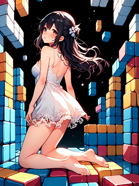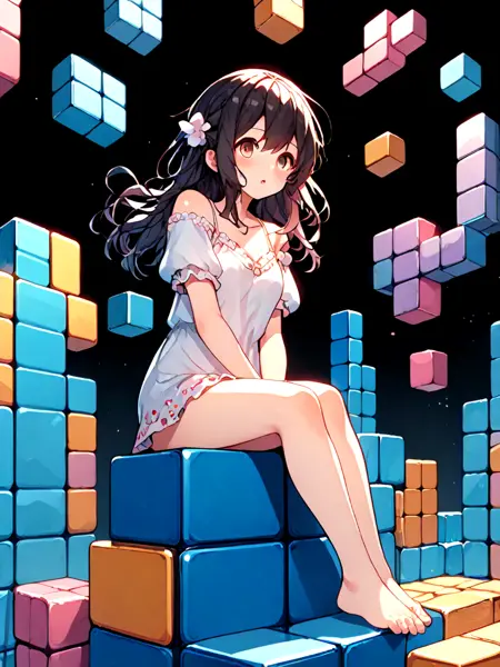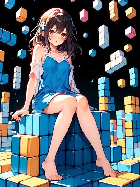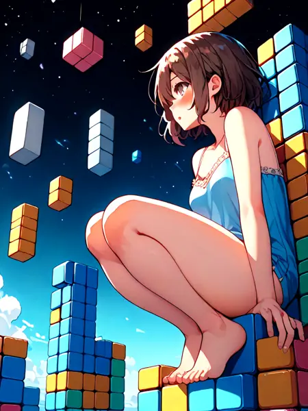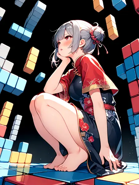 注意:如果坐姿容易出错,请在负面提示中添加“多个膝盖”。(SD 1.5)