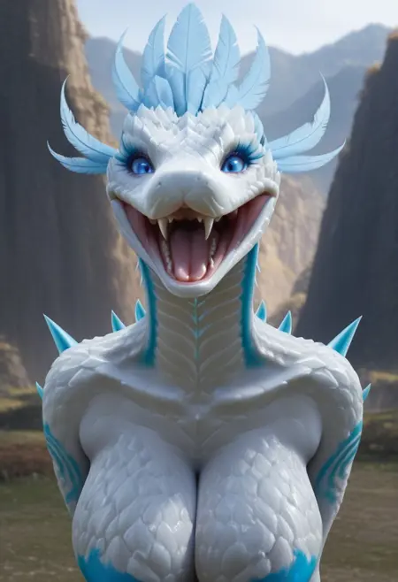 編集/アップデート:バージョン2を試みています。タグをオリジナルのキャラクターにより近づけるためです。このバージョンのタグは:「Xiao_bai、蛇、頭の羽、人間なし、うろこ、青い目、突起、光る目、牙」です。