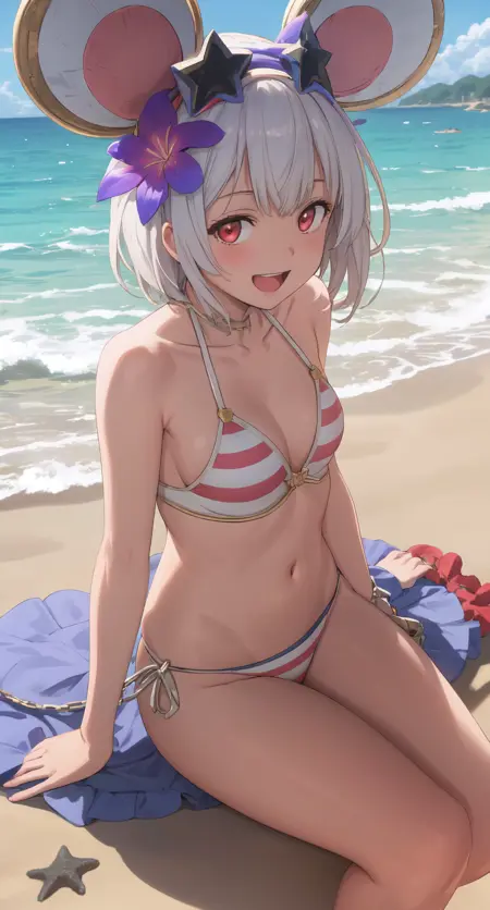 第二个问题更重要:我试图贪心一点,把她的某些皮肤也用进数据集,因为它们与基础服装差别足够大。我只用了她泳装皮肤的一些图片,结果导致她现在偶尔会出现大腿绑带。不过,如果你在负向提示中使用“裸腿”或“去掉大腿绑带”,我觉得应该可以消除这个问题。