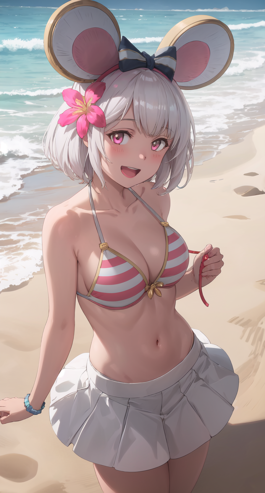 より関連性の高い2つ目の問題は、ベースの衣装と十分に異なるため、彼女のスキンもいくつかデータセットに取り入れてみたことです。特に水着スキンの画像だけを試しに使用した結果、彼女が時々太ももストラップを持つようになってしまいました。しかし、裸足や「太ももストラップ」をネガティブプロンプトに追加すれば、これを回避できると思います。
