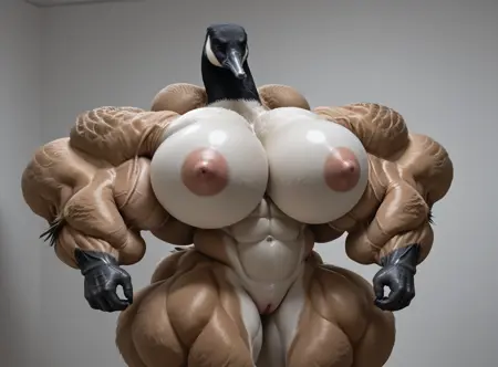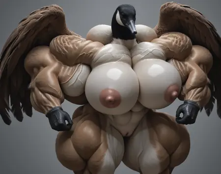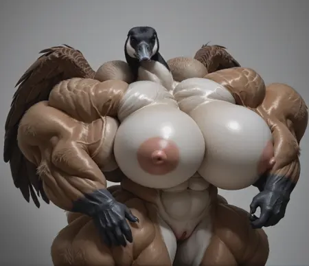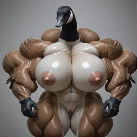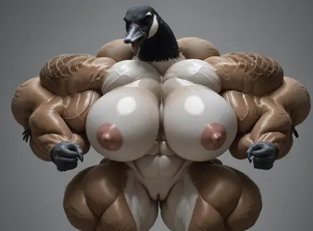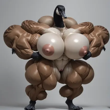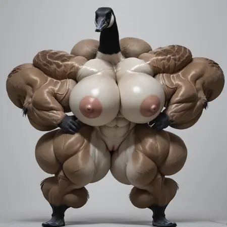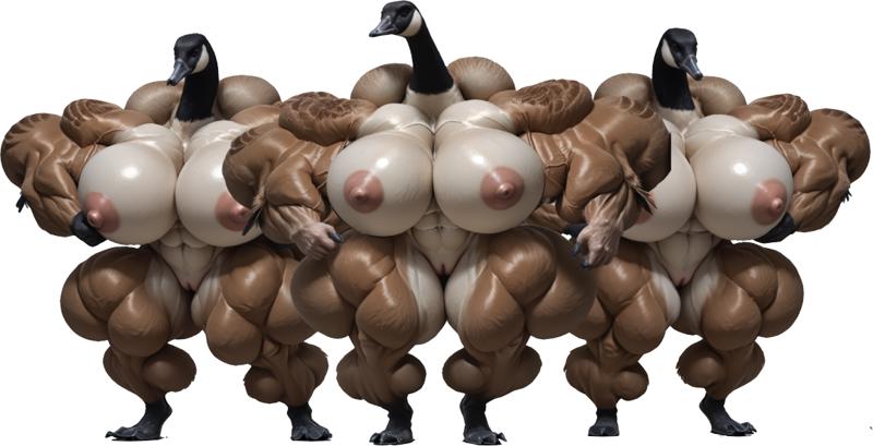 waterfowl, wildlife, long neck, black head, black neck, white chest, brown feathers, feathered body, black beak, anthro, Canadian goose, goose, black feet, webbed feet