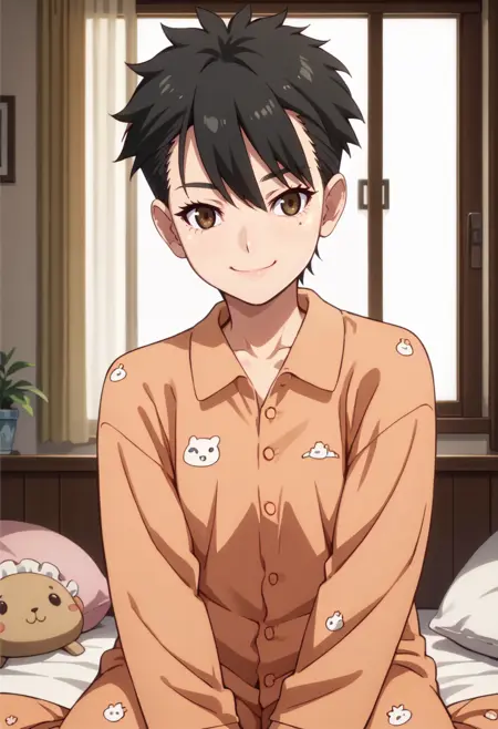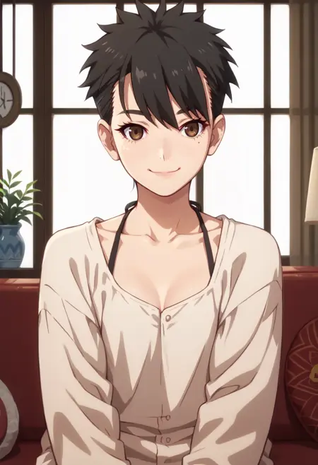 角色:五月野莉花,眼下有痣,棕色眼睛,短发,黑发