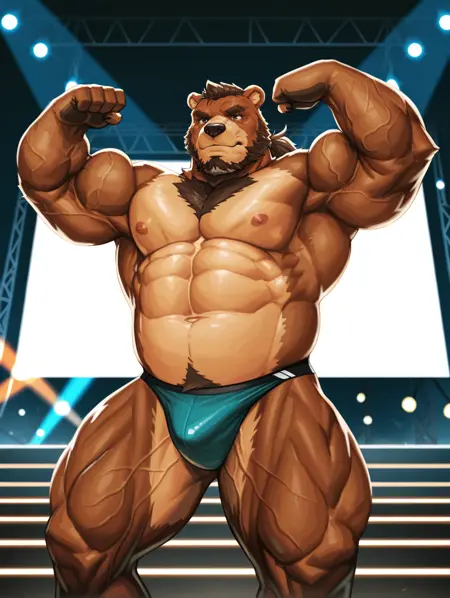 masterpiece, best quality, amazing quality, very aesthetic, high resolution, ultra-detailed, absurdres, newest, scenery, depth of field, scenery, volumetric lighting, by traveler, avian, 1boy, solo, male focus, nipples, bulge, male underwear, underwear, furry male, furry, arm hair, athletic, athletic male, topless male, bed, beroom, underwear only, large pectorals, on side, lying on side, looking at viewer