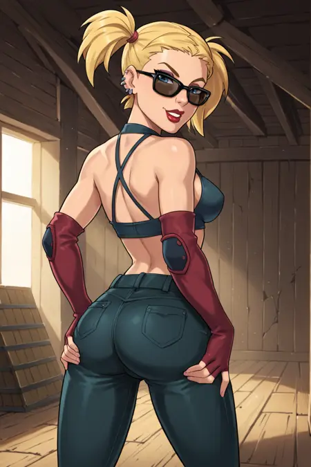 ベースプロンプト:タビサ・スミス、短い髪、金髪、青い目、メイク、リップスティック