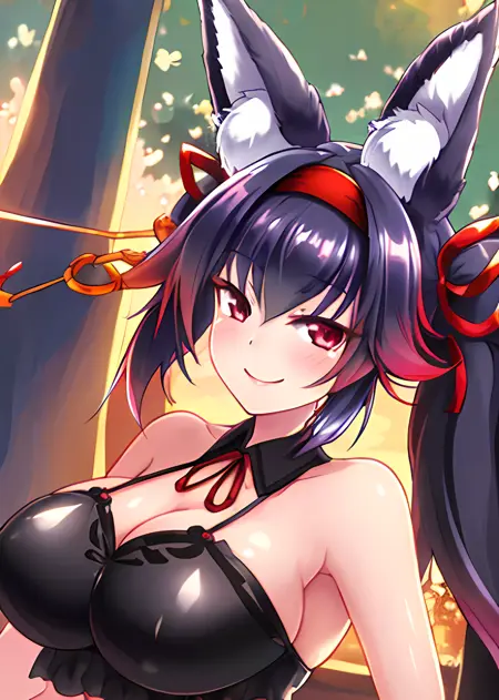 神奇的是,Giselle的外观是可以自定义的:如果你不喜欢她的狐狸耳朵,只要不在提示词中提及即可。这对她的脸部和头部效果很好,你可以让她拥有长发、双马尾、单马尾等各种发型,但我不确定对她的身体其他部位是否同样适用。