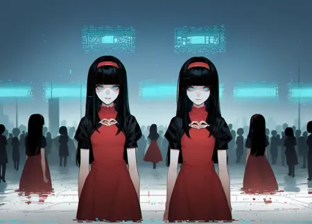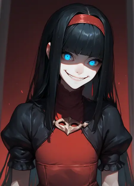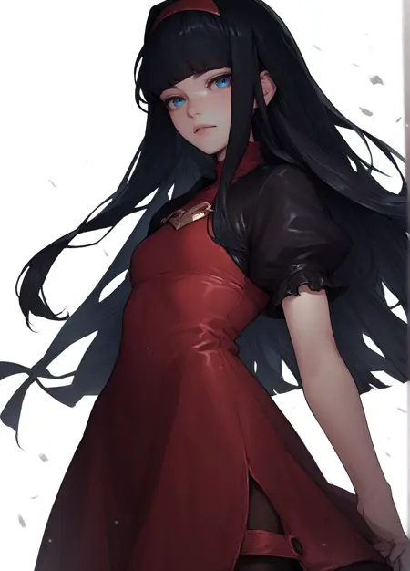 1girl, solo, 黒髪, 長髪, まっすぐな前髪, 青い目