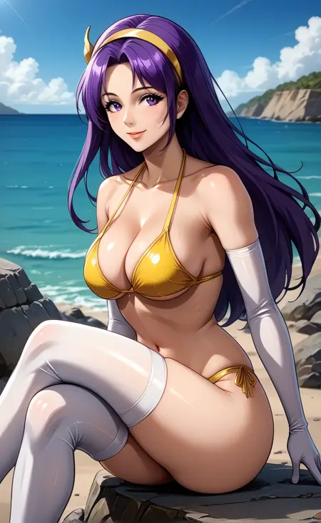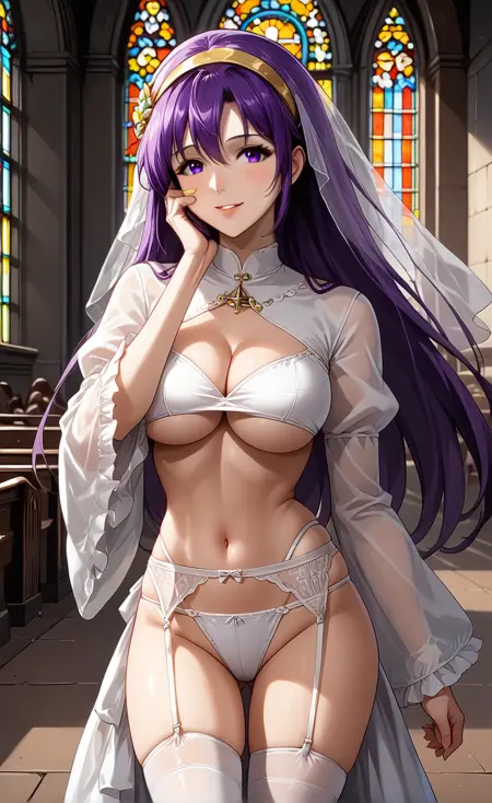 (long_hair, very_long_hair, navel, toned_abs, cleavage, purple_eyes, purple_hair,