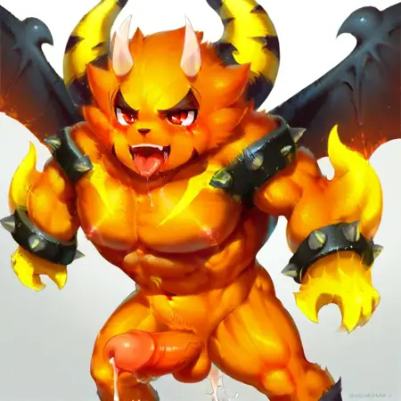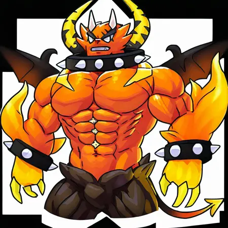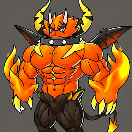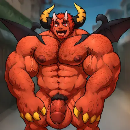 Trigger Words:huoshen,demon wings, red hair,spiked bracelet,horns, red eyes,navel, pectorals,furry,