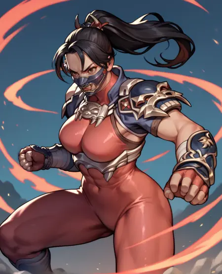 Taki, brown eyes, black hair, ponytail,