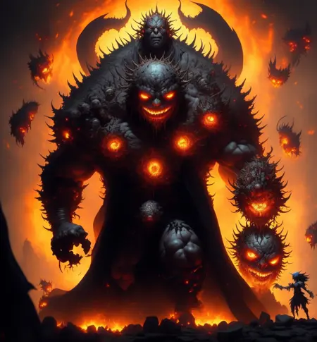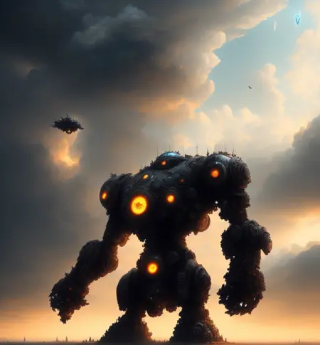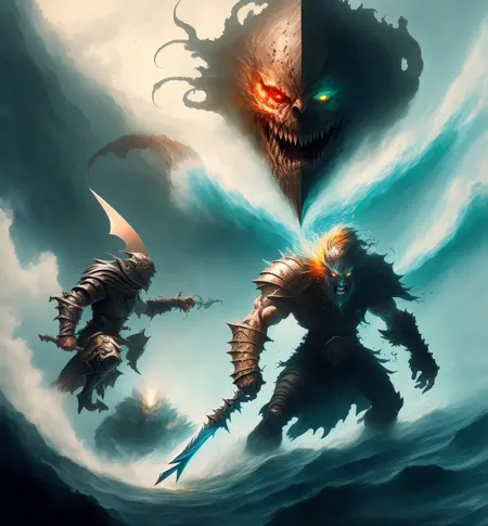 You can use this embedding to create large monsters/creatures, and an "adventurer" in the foreground if you wish. Including the word "fight" in your prompt can help with including that second character. It works fairly well with models like Dreamshaper, Dreamlike Diffusion, Roboetics mix, etc.