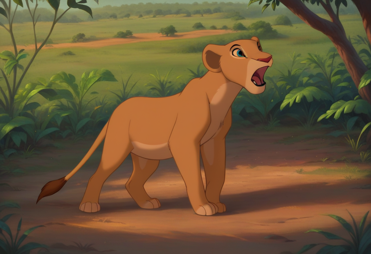 nala, lion, two tone fur, tan fur, female, yellow sclera, teal eyes, claws, clawed paws, fangs,