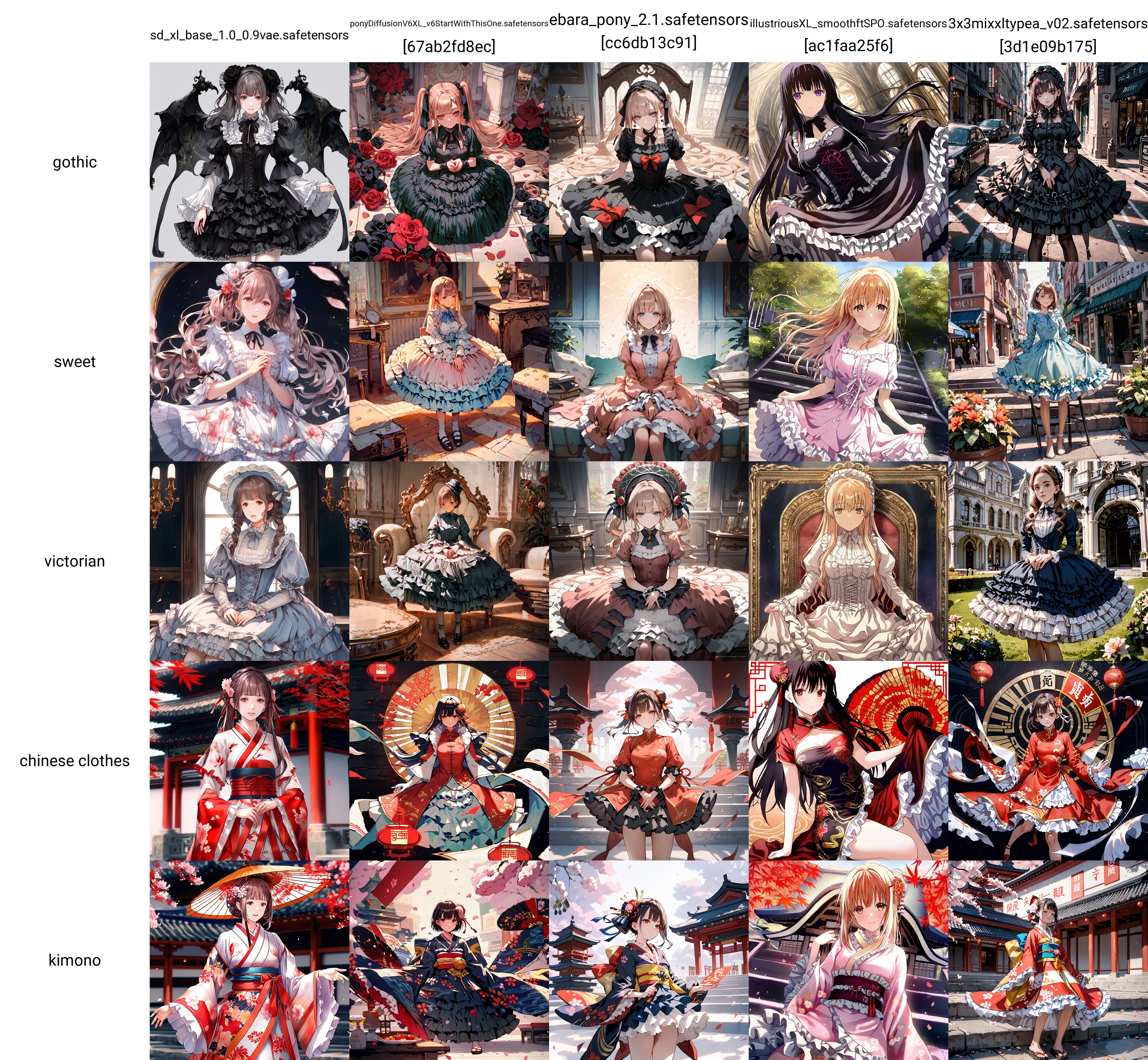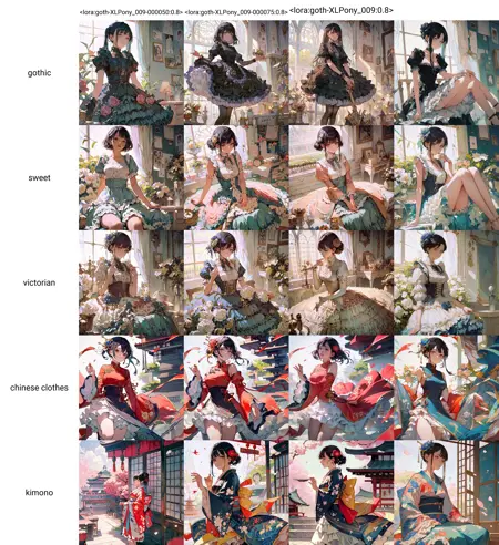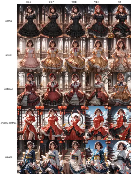 The theme of this LoRA revolves around girly clothes adorned with frills and intricate designs that require significant drawing effort. The initial version lacks well-organized tags and is mainly based on illustration materials. To improve the model, including photos with mannequins and close-up images would be essential. Although I attempted to use LoraPlus, I couldn't fully leverage its potential.