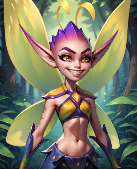 Willow, yellow eyes, - pointy ears, pink skin, if needed